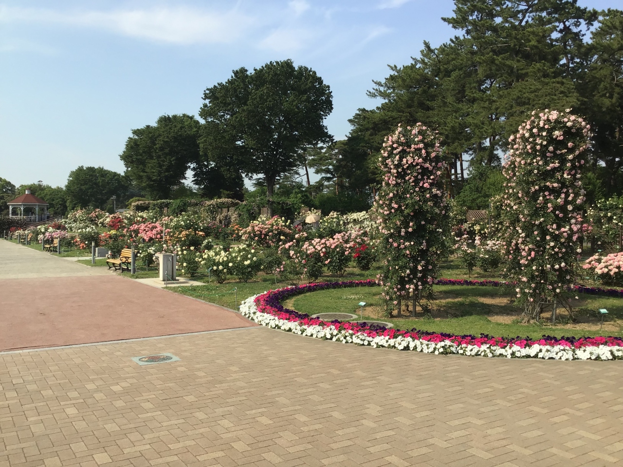 敷島公園の北側にある、入場料も無料のバラ園です。
