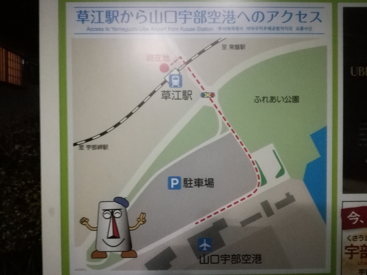 JRも駅名を草江(山口宇部空港前)のような分かりやすい名称にすると利用客も増えると思う。なお、駅は無人駅でした。