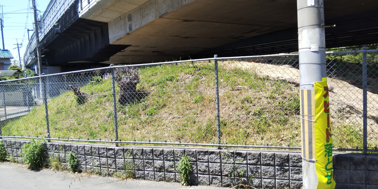 赤面山古墳は西名阪の高架下にあります。なかなか珍しい場所にあり、最初に通った時には古墳と気づきませんでした。改めてみると高くはありませんが円墳で、道路が変わった形になっています。「文化財」と書かれた石の印がありました。