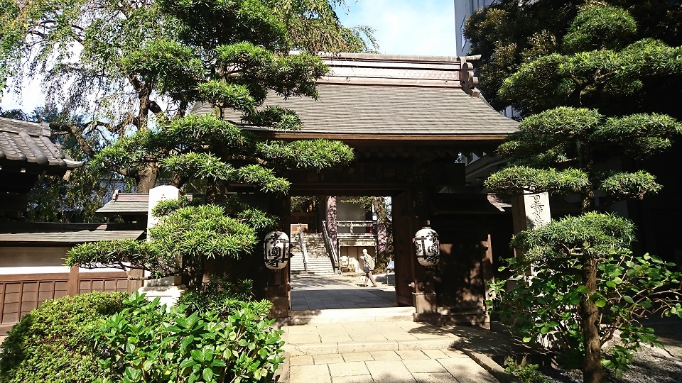 新宿駅西口、青梅街道沿いにある日蓮宗寺院です。創建年代は不明のようですが、渋谷の幡ヶ谷に創建され、天正13年(1585年)頃に現在の場所に移転してきたそうです。独特なデザインの本堂が印象に残っています。