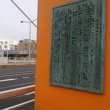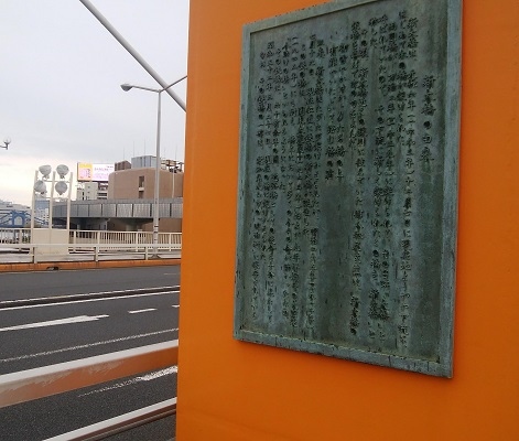 特徴的な黄色の塔に新大橋の由来が記してありました。現存のものは昭和52年に架け替えられたものだそうです。