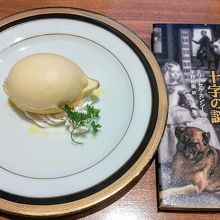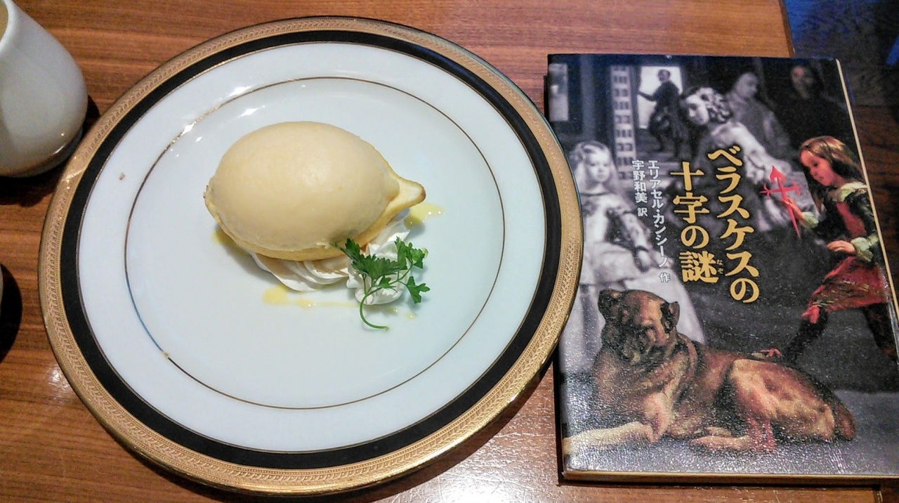 梶井基次郎の小説『檸檬』をイメージしたお菓子があると知り、丸善の3階の奥の方にあるカフェに立ち寄りました。ショーウィンドーにお目当ての檸檬が2個あるのを確認して入店、すぐに注文しましたが、それが最後の1個で、ぎりぎりのタイミングでした。半分に切られてくり抜かれたレモンの上に、ふわふわのレモンムースが、レモンの形にのせられて出てきました。別途提供されたレモンソースをかけて、泡のように消えていくレモンムースを味わいました。450円でドリンクがセットできます。食後に仕上げとして、同じフロアにある美術の棚も見てきましたが、もちろん檸檬爆弾は置かれていませんでした。