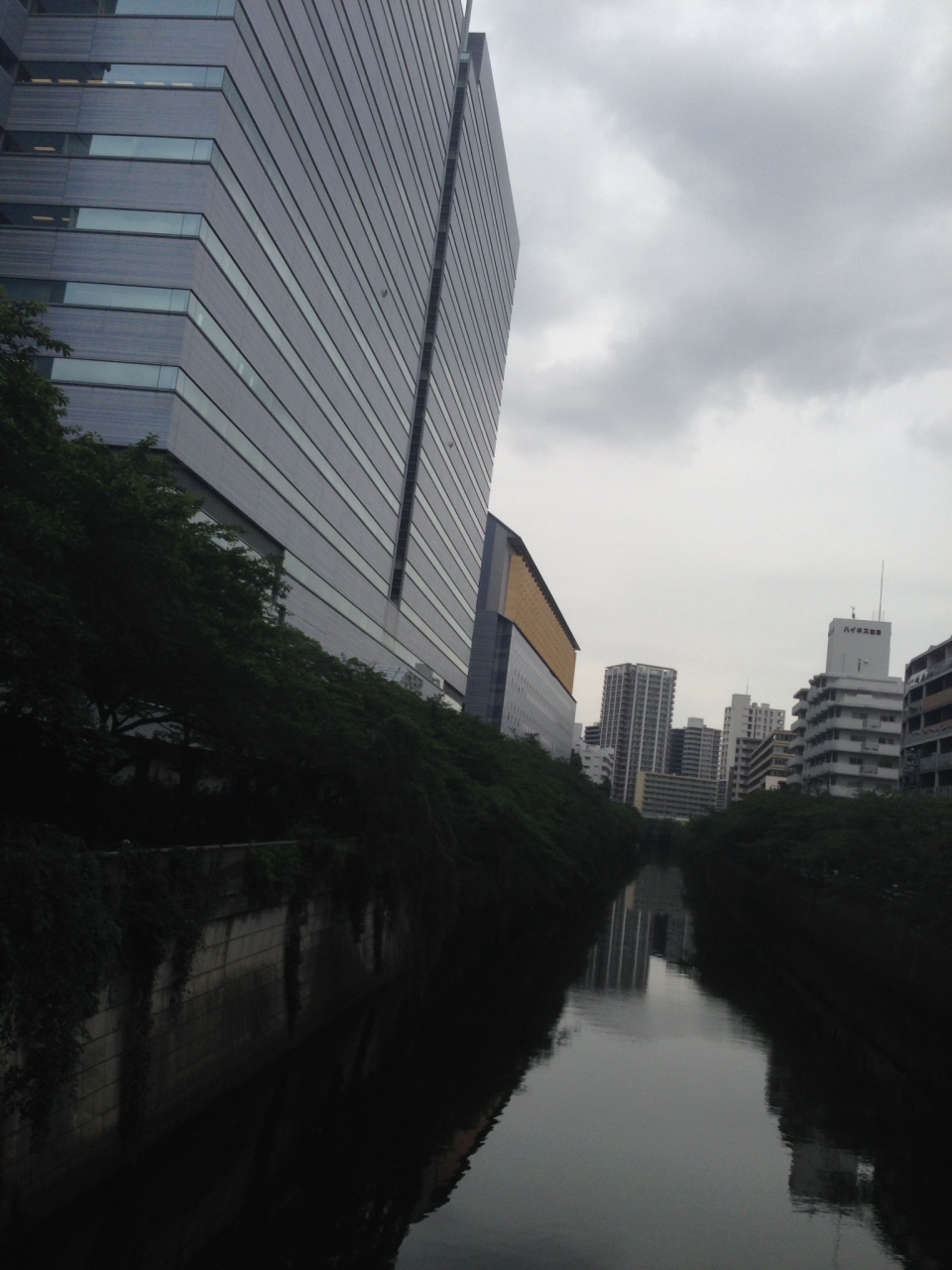 7月なので目黒川の桜は葉っぱをつけていて特に見るべきものはない。