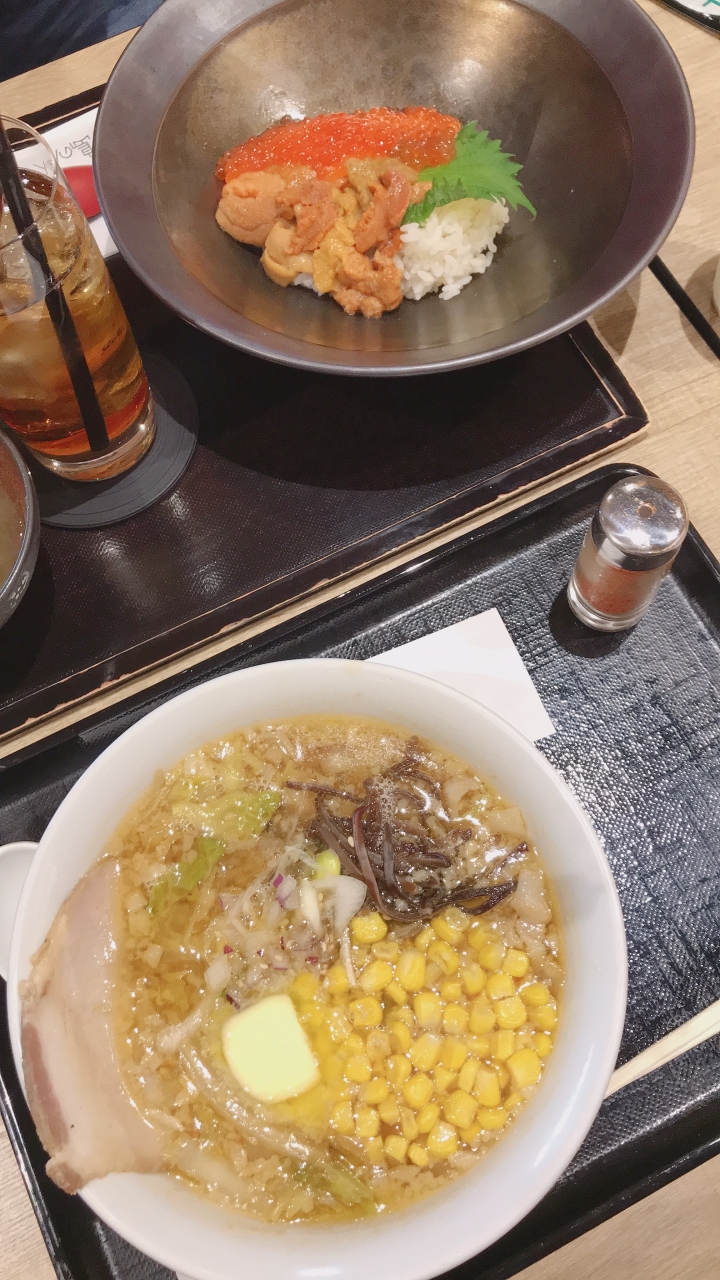 北海道旅行最終日、荷物を預けて保安検査を通った後、フードコートを見つけたので食事に立ち寄りました。最後に北海道味噌ラーメンと海鮮丼を頂き、とても大満足な旅行でした。