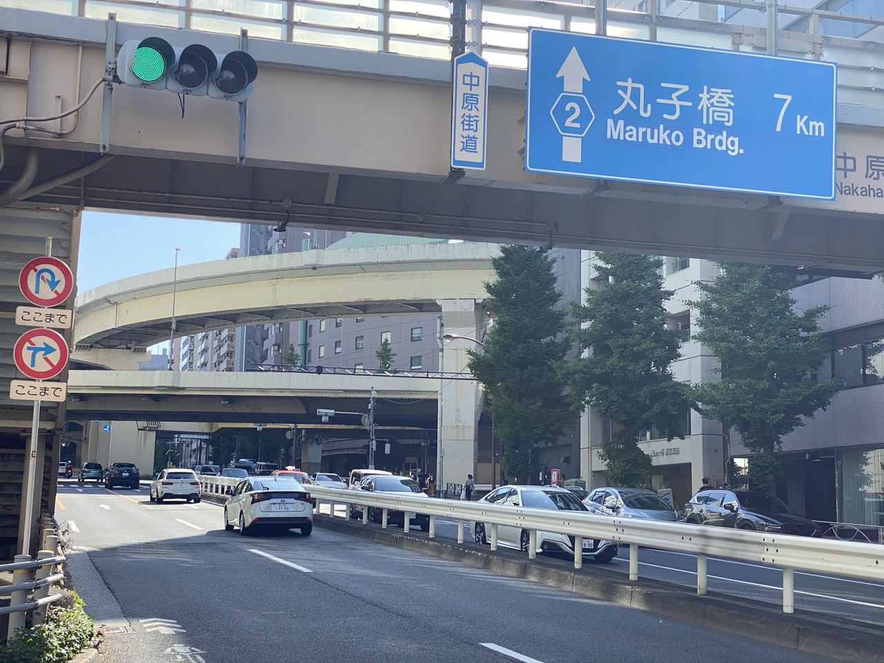 都心から神奈川までつながっている幹線道路のひとつです。起点はたぶん五反田。で、よく利用するのは五反田から環八あたりが中心。ちなみに五反田では桜田通りがこの中原街道と第二京浜に分岐するので、ちょっとややこしいです。うっかり間違えると第二京浜に。道路幅は片側二車線の幹線道路としては標準的。歩道も整備されています。
