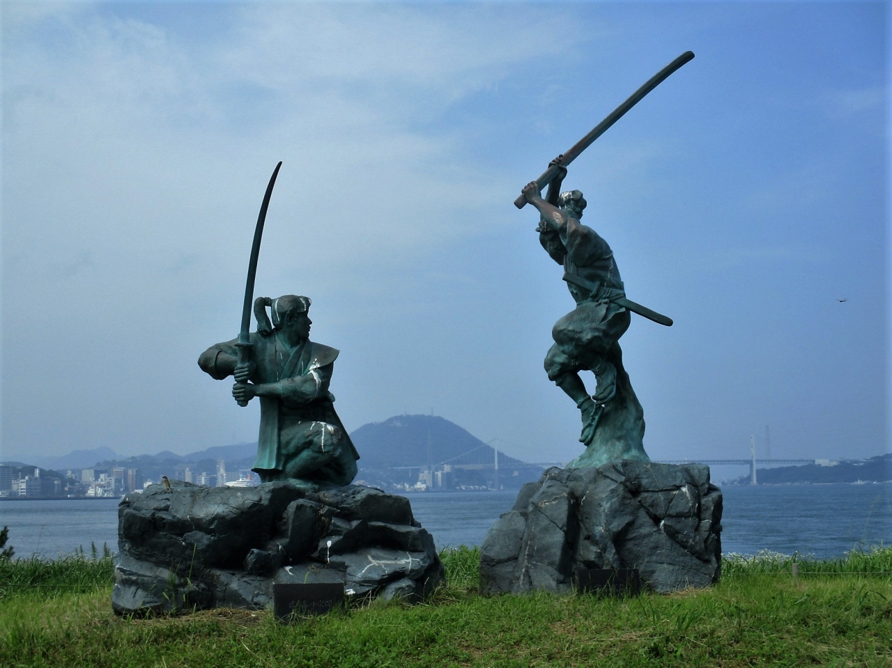 宮本武蔵と佐々木小次郎の銅像が建立されている関門海峡内に浮かぶ小島です。
