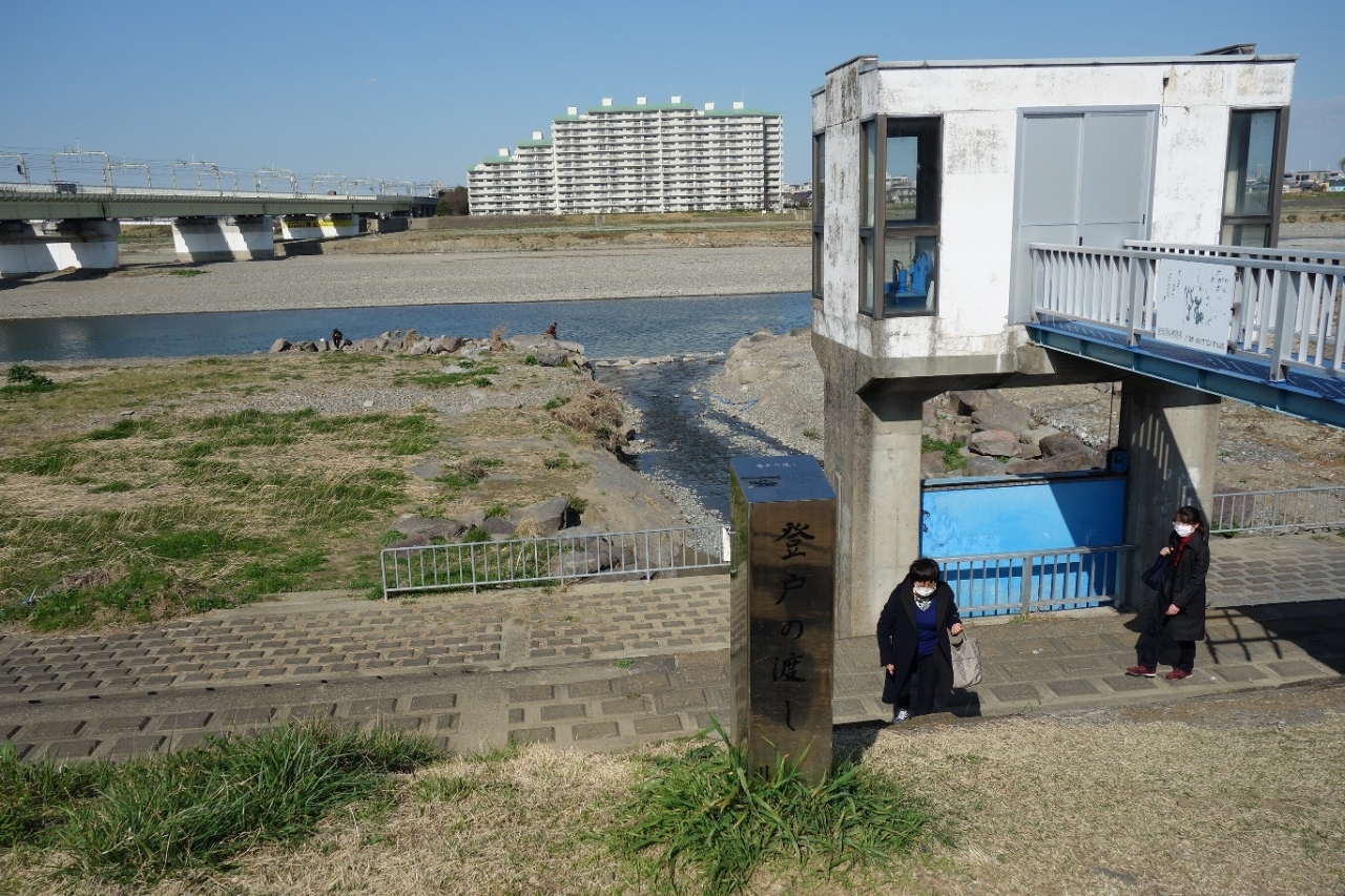 川崎あたりのエリアを散策中こちらの場所を訪れました。多摩川沿いのサイクリングロードに「登戸の渡し」と書かれたサインが有ったので、かつてここに渡しがあったことを知りました。今では頑丈は橋が架かる多摩川ですが、以前は船で渡らなくてはならず大変だったなと思いました。