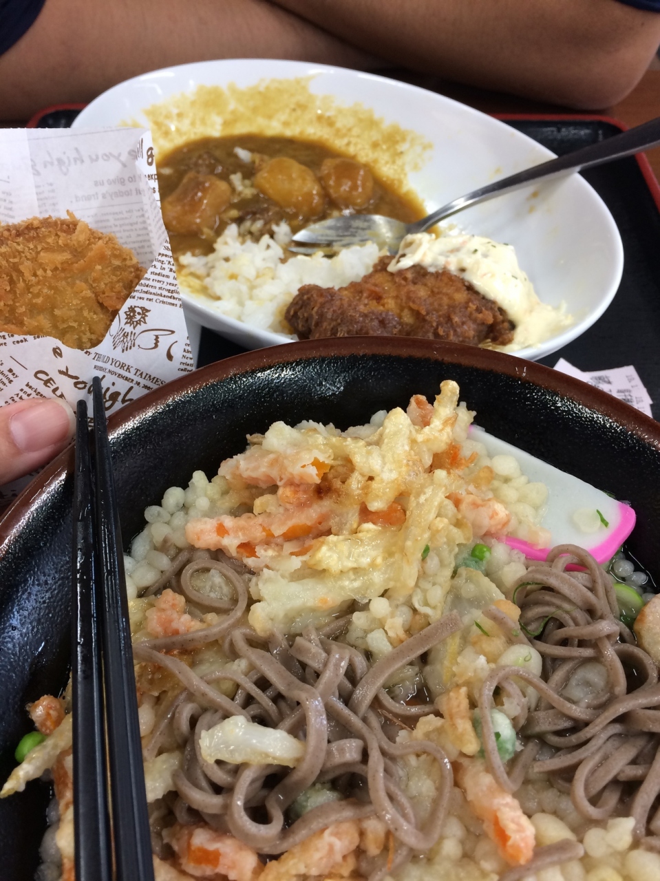 カレーを頼みましたが、から揚げもついてきて、ボリューミーな一品で、大変テンションがあがりました。妻は、コロッケとかき揚げそばにしていましたが、どれもおいしかったです。コロッケは、大きさの割にお値段高めかな。