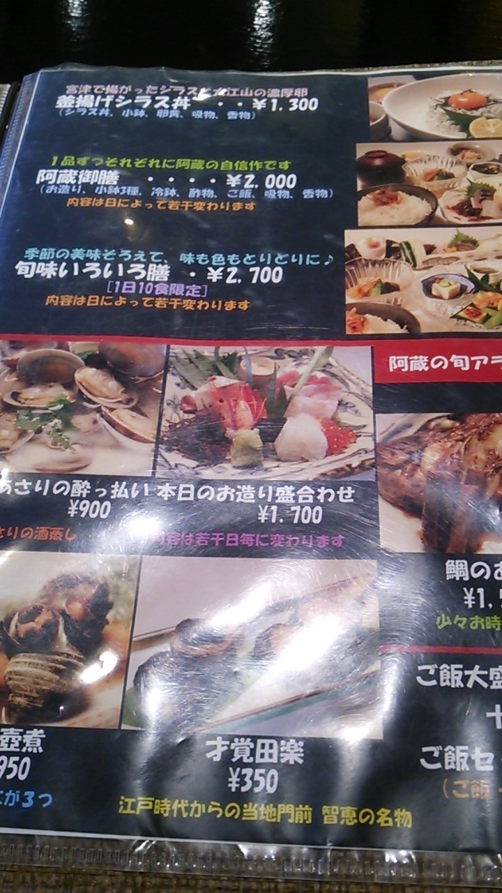 その日は1,650円する「丹後サザエ丼」と1,700円する「本日のお造り盛り合わせ」を頂きました。
