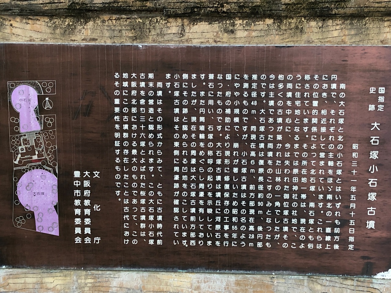 桜塚古墳群の一つです。小石塚古墳は、南にある大石塚古墳とペアのようになっています。小石塚古墳は北にあるので、北石塚とも呼ばれます。古墳時代前期末にできた前方後円墳で、昔は、この辺りまでが原田神社の広い社中だったようです。
