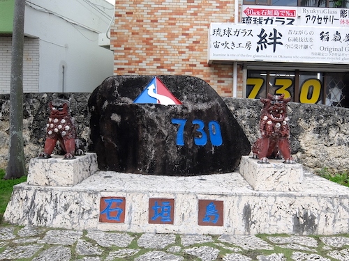 第二次世界大戦後、アメリカに占領されていた沖縄が日本に返還されて6年後の1978年7月30日、アメリカ式の右側通行から日本式の左側通行へ変更されたということを記念した碑です。周辺には土産物屋や飲食店があり、賑やかな場所。