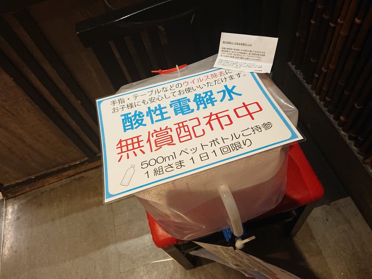 アルコール除菌スプレー等はまだ本数制限がかかっているので酸性電解水無料配布はありがたい。