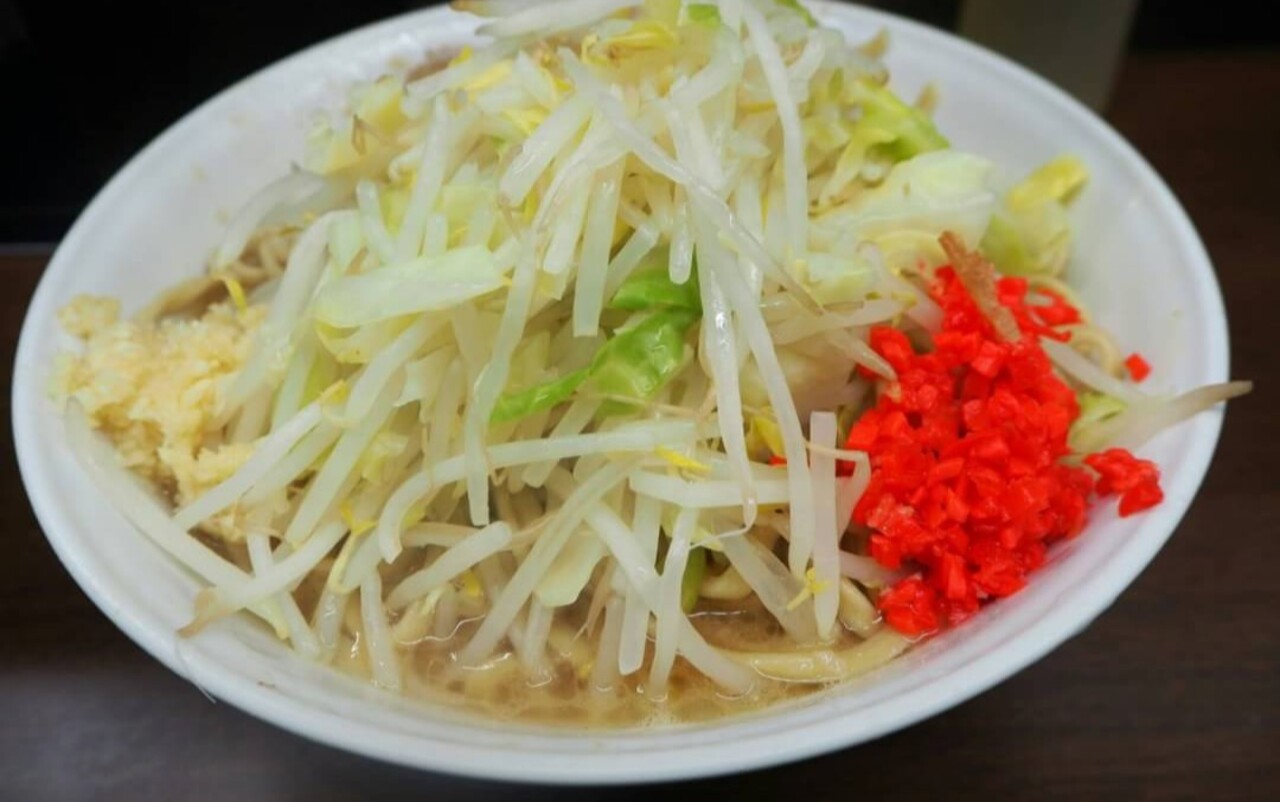 いつも変わらず美味しい関内のラーメン二郎。豚肉もやわらかくてジューシーでホロッホロ。にんにくと紅生姜も入れて味変するのも楽しい1杯です。