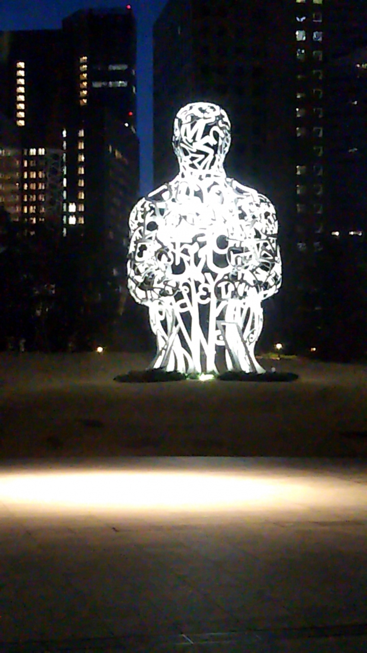 夜「虎ノ門ヒルズ」を訪れた際に『虎ノ門ヒルズ オーバル広場』のオブジェがとても印象的でした。照明のLEDによりライトアップされていて、作品が際立ち浮かび上がっています。