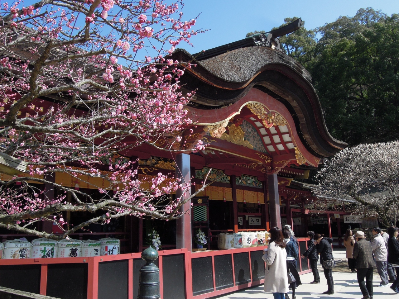有名な飛梅の対になる位置に植わっている紅梅だ。皇后の梅と書いて「きさいのうめ」と読む。本殿から見れば左近が飛梅で、右近が皇后の梅となる。大正天皇の皇后である貞明皇后が葉山御用邸から持参してお手植えされたという。朱塗りの本殿にはこちらの紅梅の方が絵になる気がする。