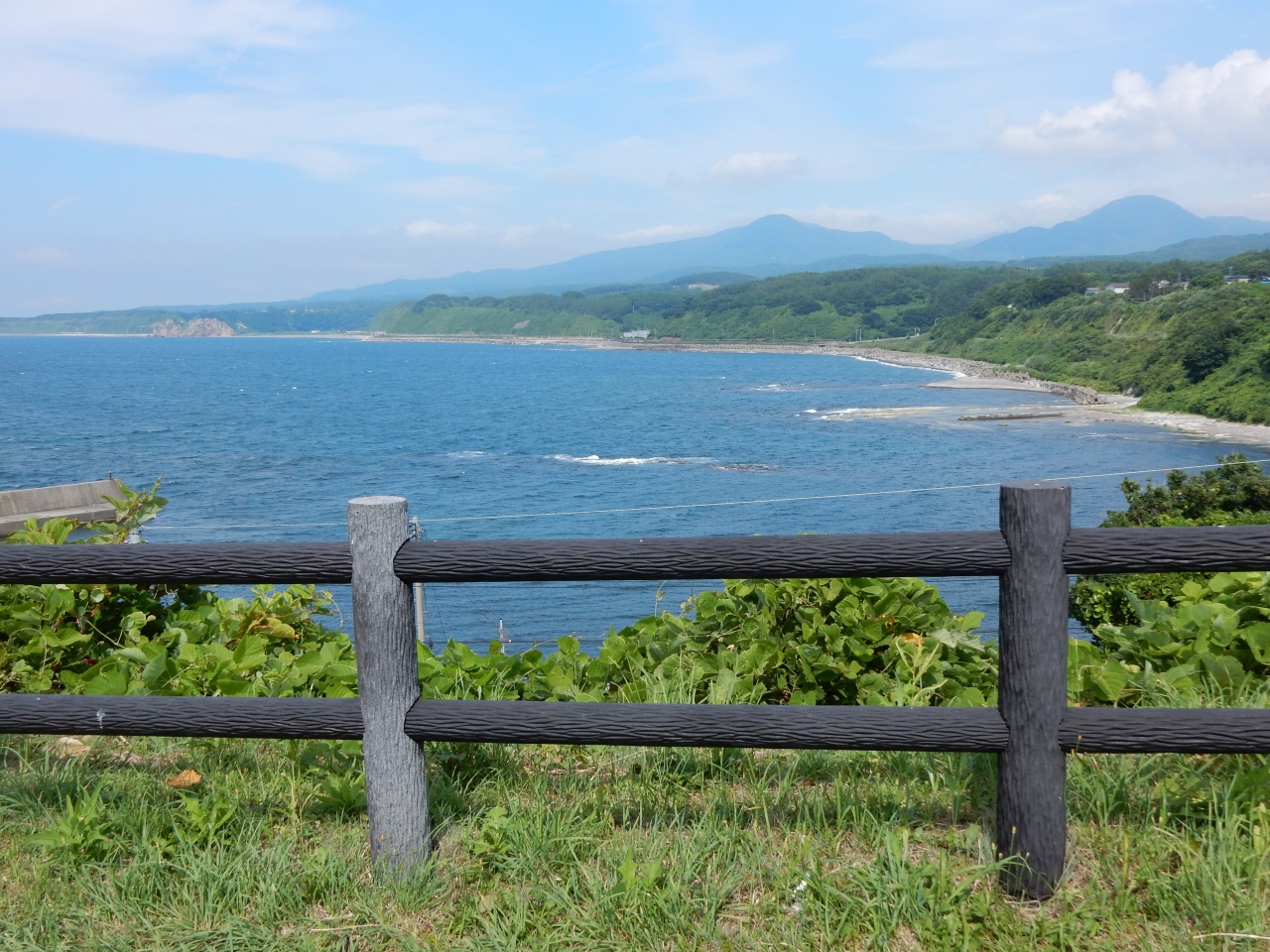 海と白神山地を一緒に見ることのできる、いい景色です。