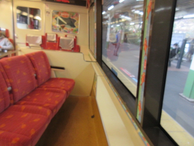 伊豆方面の観光で電車を利用したのですが、その時に乗車しました。ちょうどリゾート21のキンメ号が来てくれてうれしかったです。普通の乗車券で乗れる電車なのに、窓向きの椅子に座れたので、豪華な気分で景色も良かったです。車内は椅子にも魚の絵が描いてあるし、色もカラフルです。いろいろなタイプの席もあっていいですよ。