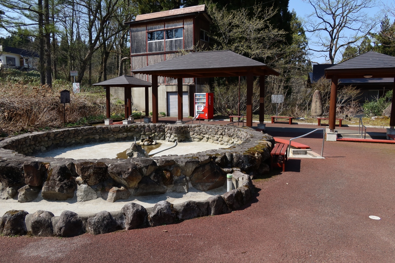 赤倉温泉の温泉街を通る県道396号線沿いに赤倉温泉足湯公園があります。公園の中には池の様な足湯、東屋付きの足湯、手湯など沢山の湯船があるのですが、訪れたときは新型コロナウィルスの影響で湯が抜かれて居て残念でした。無料で駐車場もある足湯公園で赤湯温泉を気軽に楽しめる施設として便利です。