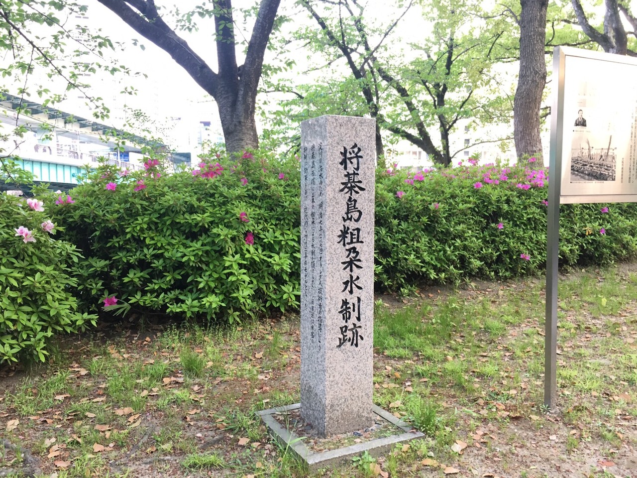 大阪市北区の大川沿いの天満橋の下にある石碑です。