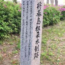 今は島もなく、当時の名残もなく、河川公園の脇に石碑が残るのみです。