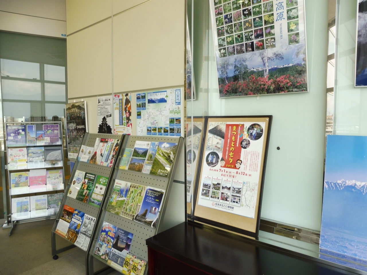 松本市内の観光案内から長野県全の地図や各種パンフレットが設置されています。