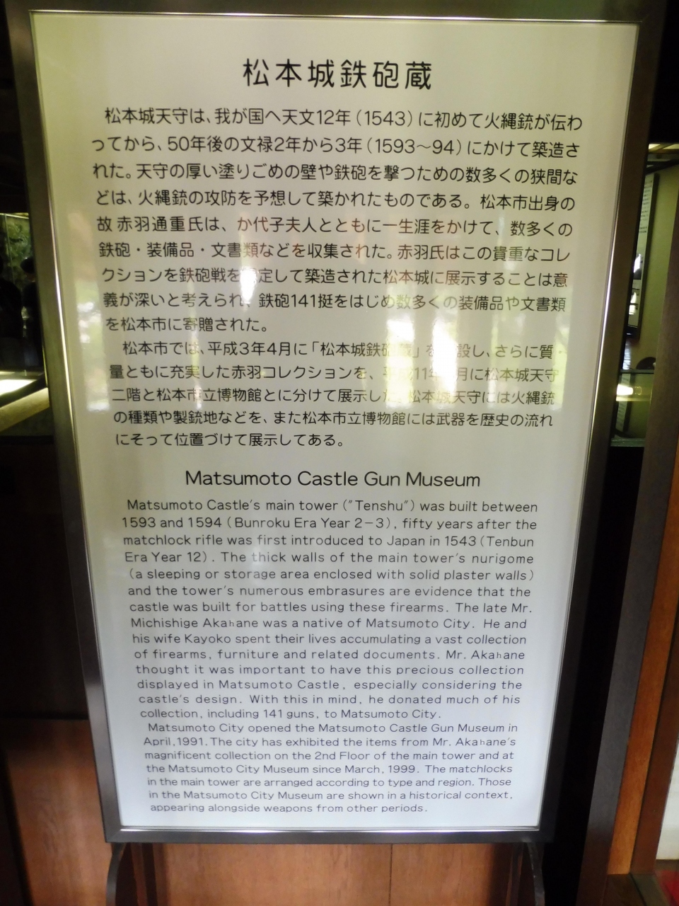 松本城の大天守閣2階に有る鉄砲に関する展示コーナーです。