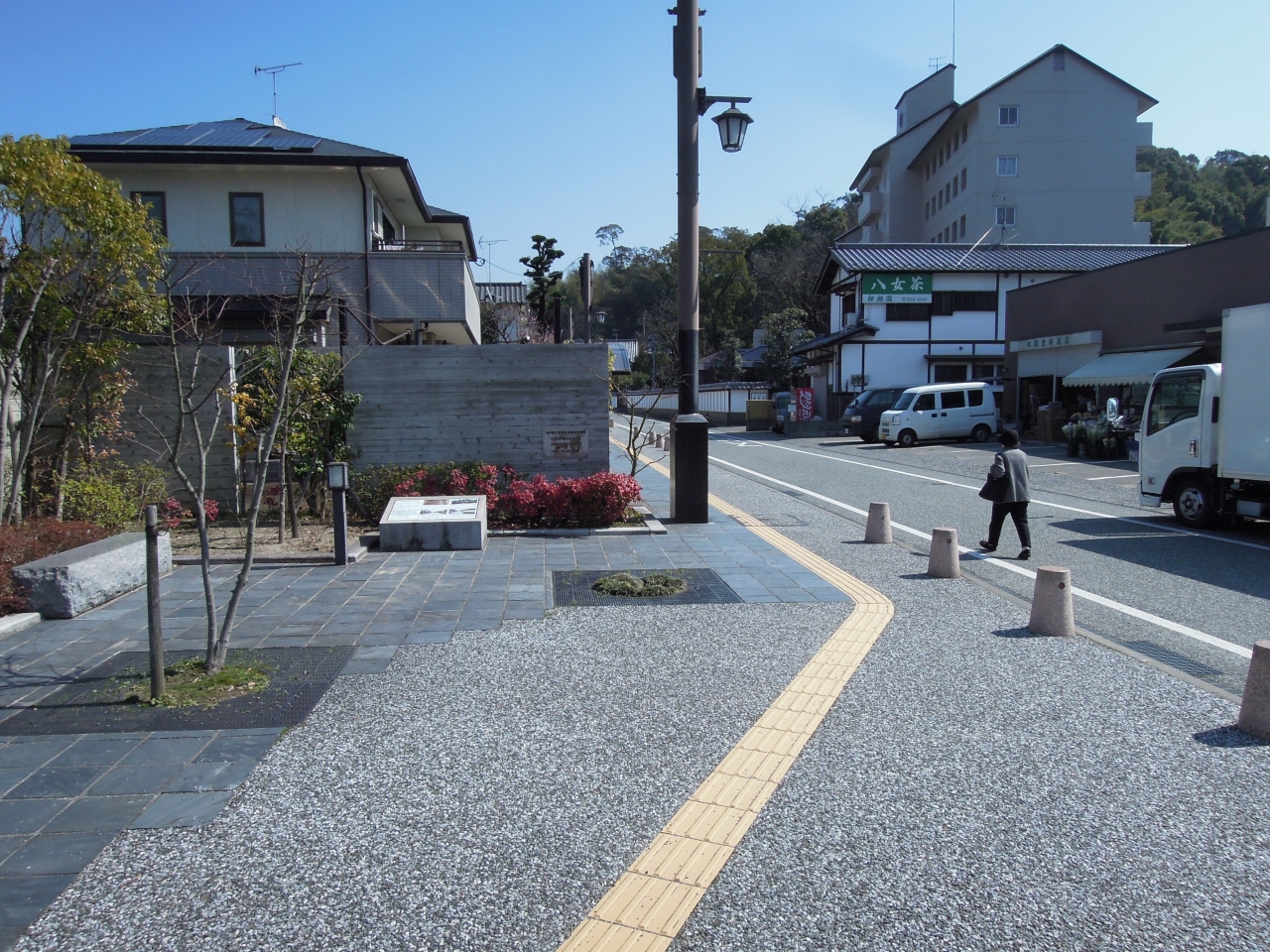 九州国立博物館が太宰府市に開設されるのを機に整備された道だ。西鉄太宰府駅から国立博物館までを結ぶアクセス道路で、ちょうど太宰府天満宮の参道と平行して走るようなルートだ。国立博物館ができる時に、まちを「まるごと博物館」に見立てて観光客の流入を図ろうという政策が策定されたが、国博通りはまさにそのコンセプトに沿って設けられた。土産物店はないが、じっくりと見れば興味あふれる遺物が点在している。