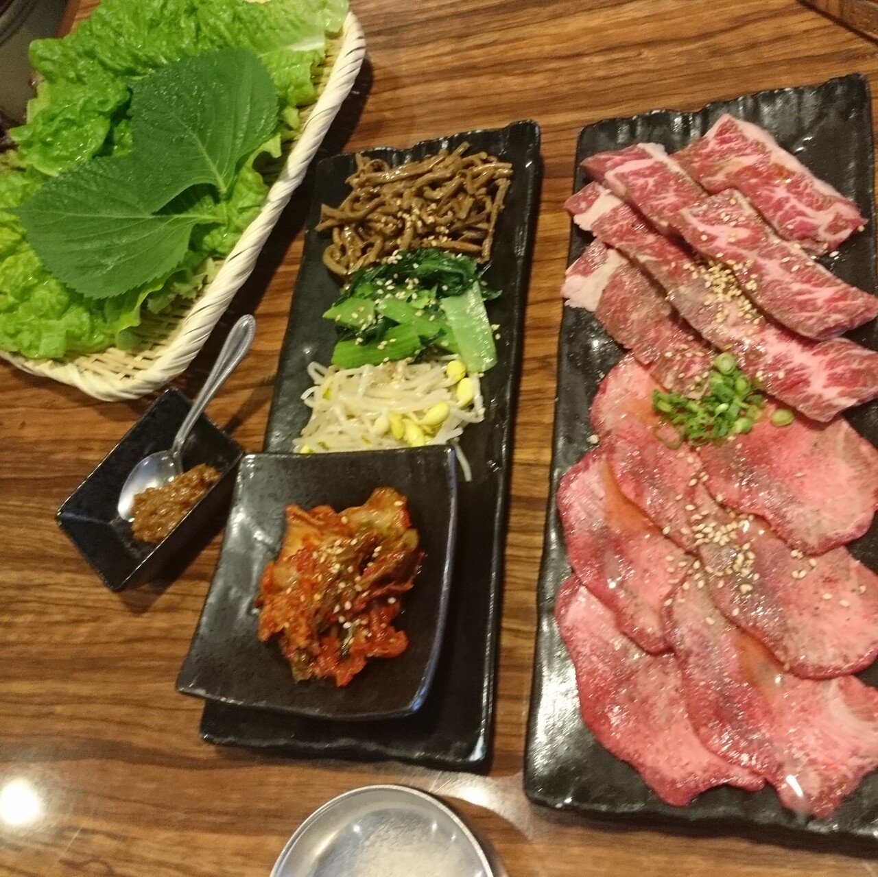 コースにて利用いたしました。焼肉は、タン塩とハラミが3枚、カルビ、上カルビ、ロースが2枚でした。ナムルの盛り合わせに、サンチュ、サラダ、クッパ、トッポギ、アイスもついてきました。お酒もすすみおいしくいただけました。