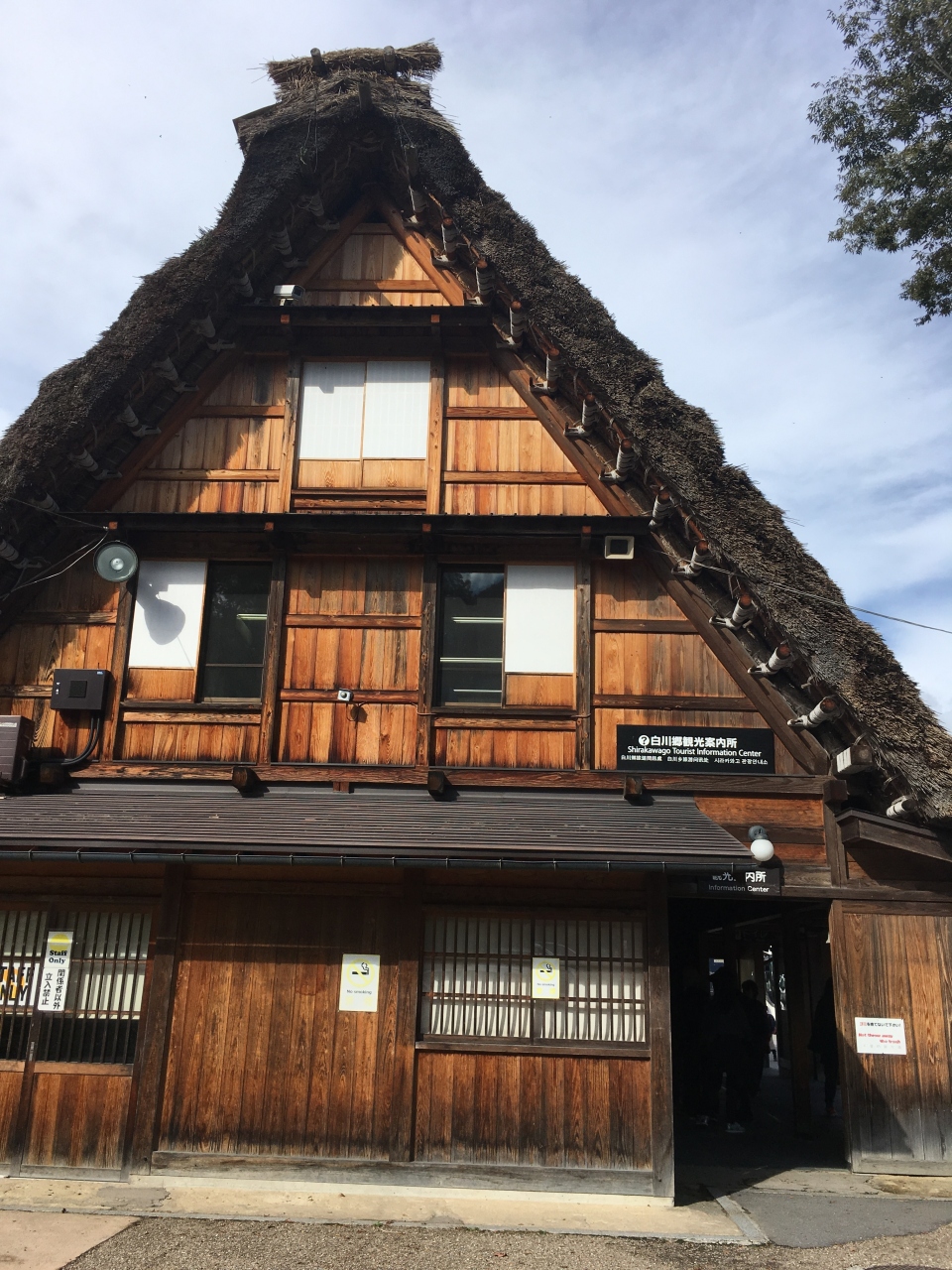 白川郷の村営駐車場の中央にある合掌作りの観光案内所、初めて行くときまずここを立ち寄る事をおすすめ、パンフレットなど無料で貰って観光情報を手に入れ、トイレもありますので大変便利。又分かりやすいので待ち合わせなどにも