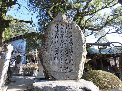 太宰府天満宮の「麒麟および鷽像」の隣にある詩碑で、太宰府天満宮宝物殿を背にして立っています。徳富蘇峰が92歳の時にしたためた漢詩が刻まれていました。菅公を顕彰した詩であることはわかりましたが、何が書かれているまではよくわかりませんでした。蘇峯菅原正敬の名で署名されており、徳富蘇峰が菅公の子孫であることがわかりました。私も子孫の一人なので、とても親近感が湧きました。