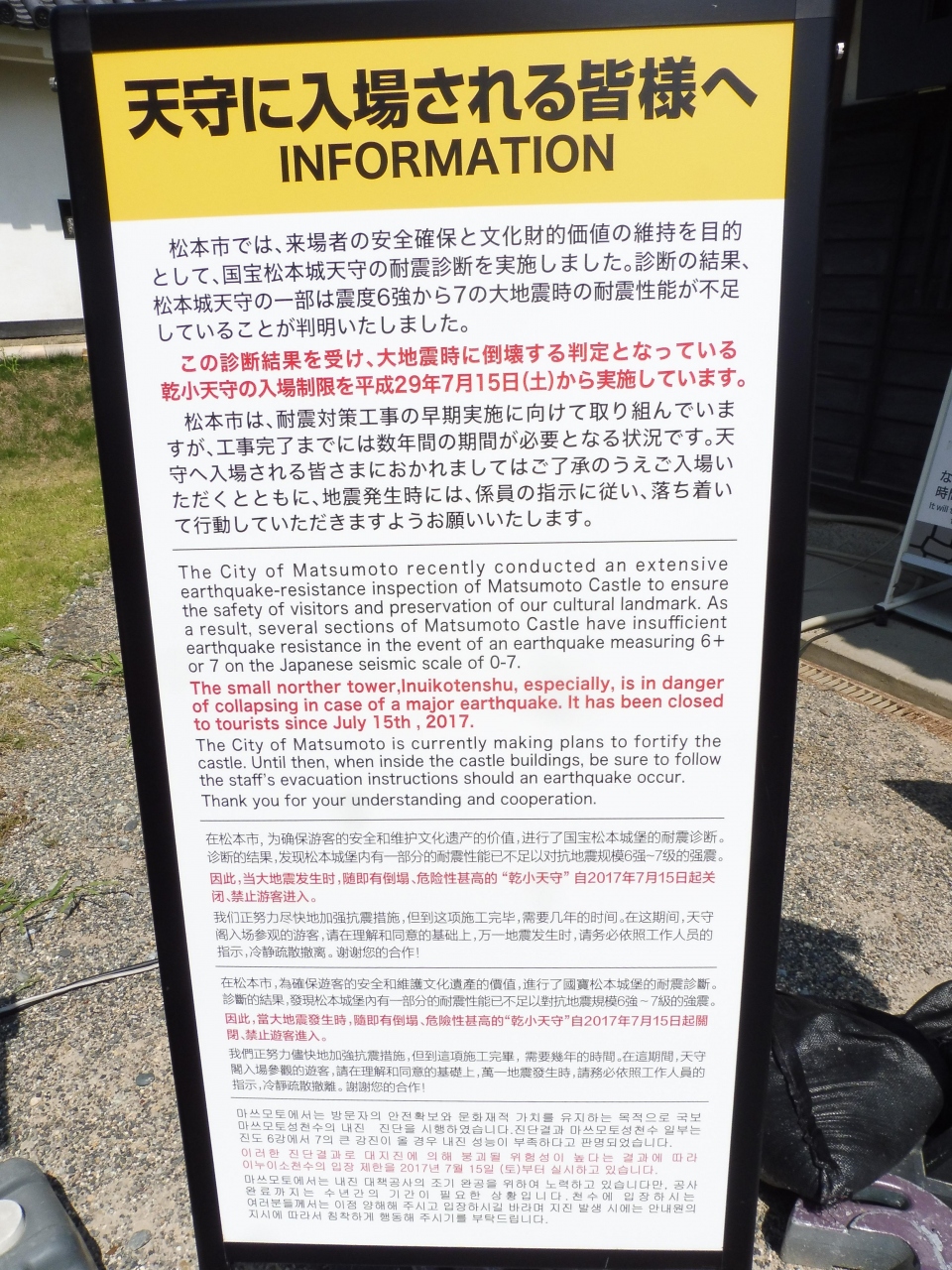 天守閣各階には石落としや鉄砲蔵・狭間など戦いの為の設備から4階の御座の間のように城主着座用の部屋が有ったり最上階には松本城を守る神様が祀られていたりと見どころ満載です。