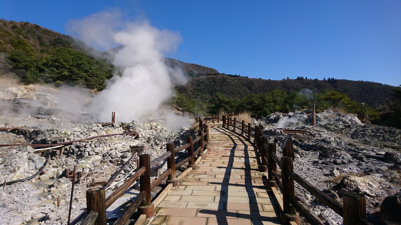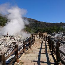 雲仙地獄の中には遊歩道がつくられているので、散歩にも最適。