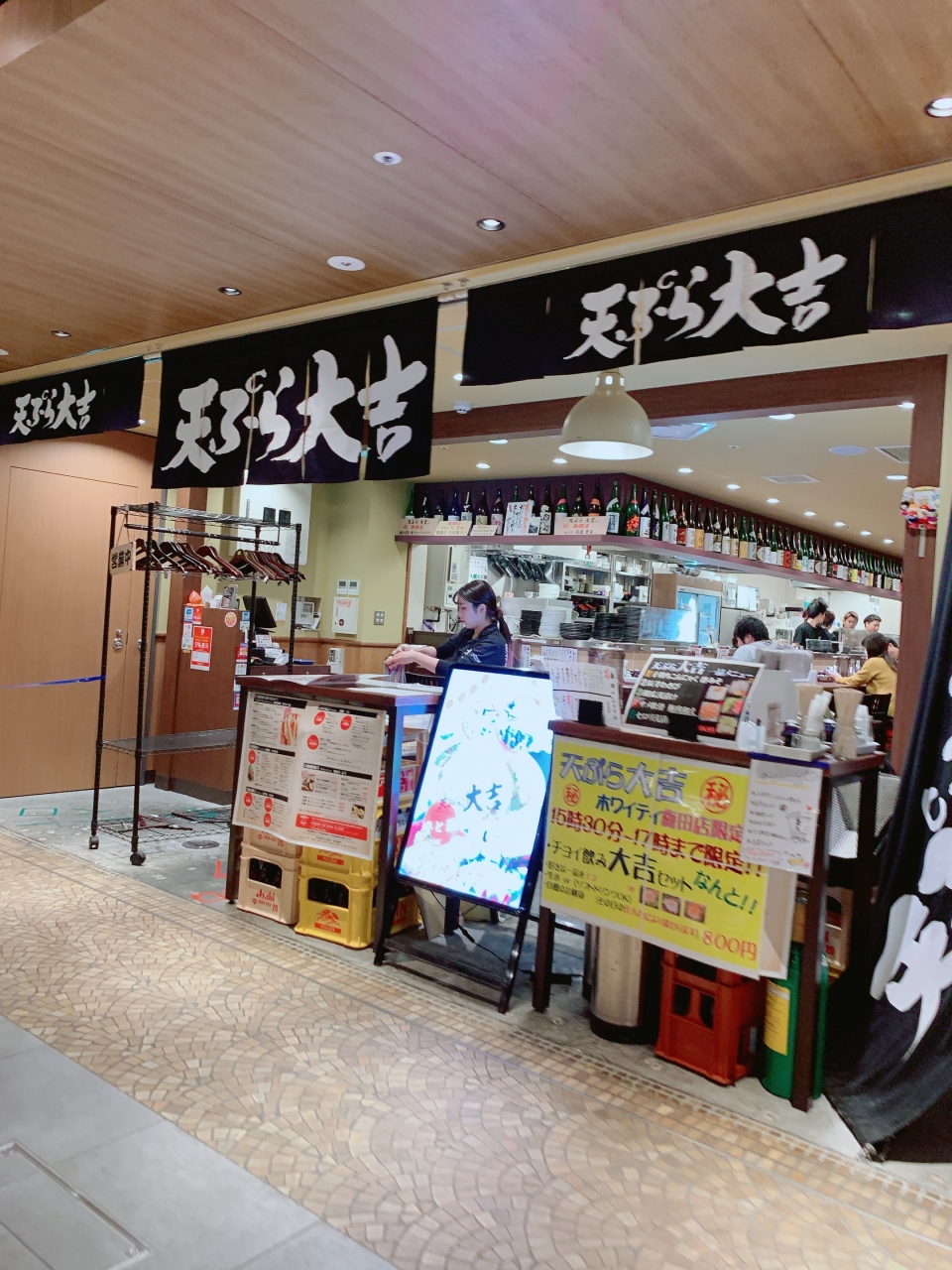 堺の市場にあるとても人気の天ぷら専門店です。雑多な感じでカジュアルに食べれてのが人気です。その店がホワイティ梅田がリニューアルしてオープンしました。梅田でも食べられるのはうれしいです。揚げたての天ぷらとおだしは最高。