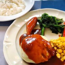 ハンバーグはデミグラスソースが美味しくジューシーで美味しかったです。