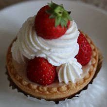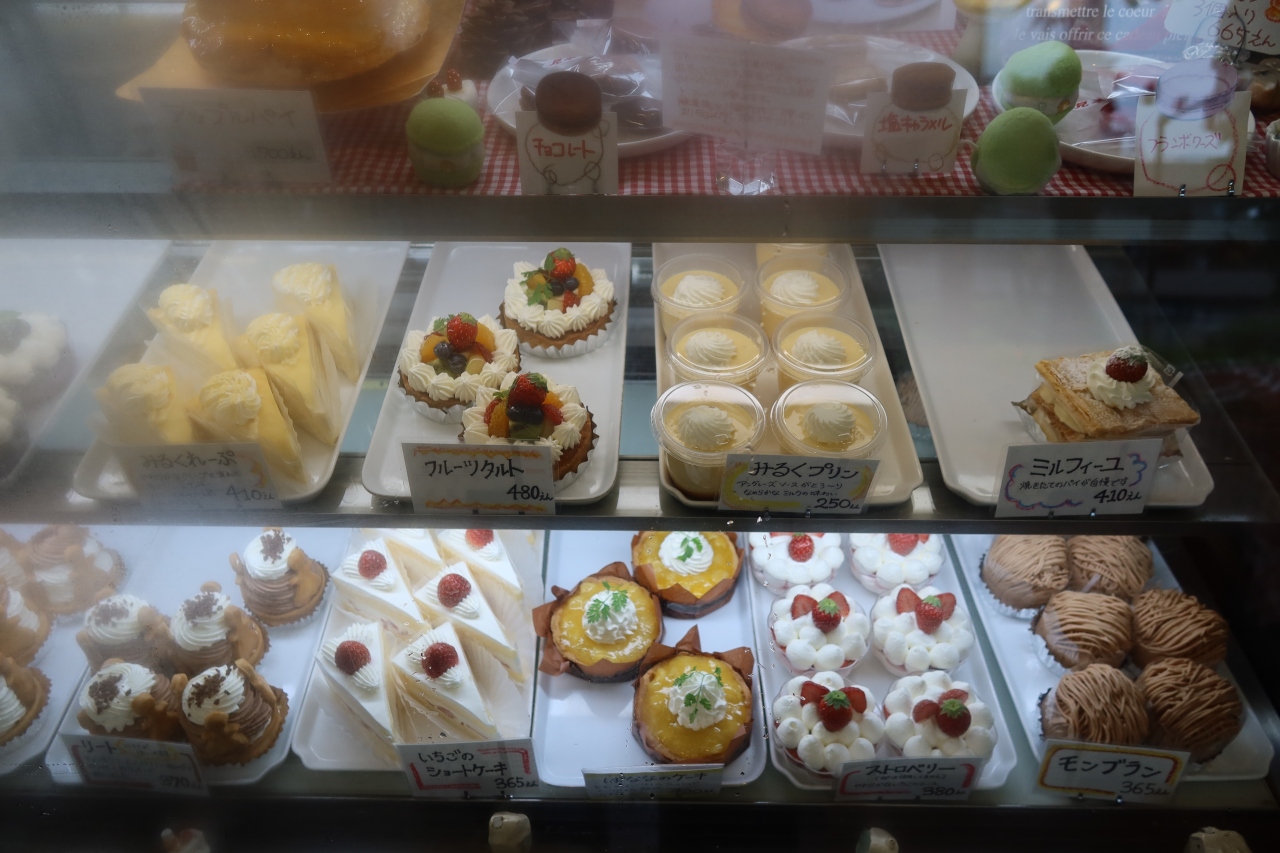 十日市場駅から300m程離れた宝袋寺入口交差点の近くにある洋菓子店です。店内では焼き菓子の他、カットケーキ、ホールケーキが売られています。今回購入したのはシュークリームと苺のタルト。全体的に小さなケーキが多く、値段も安いのですが、それ相応の味で、手作り感があるのが良い所。そのせいか地元の方が多く買いに来ていました。