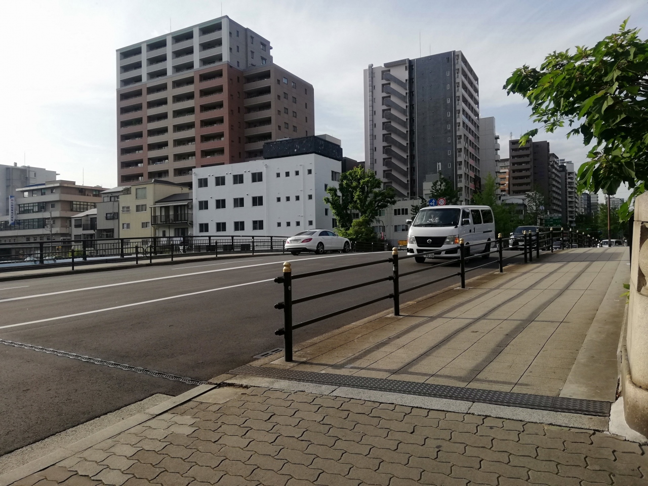 大阪市のなにわ筋沿いにある橋長44.6m、幅員22.0mの橋です。道頓堀川に架かる橋の一つです。橋の上からは、東側に不思議な外観で有名なnamba hipsを眺めます。昔は欄間、今はおしゃれなインテリア家具のお店などで有名なオレンジストリート(立花通り)が近くにあります。