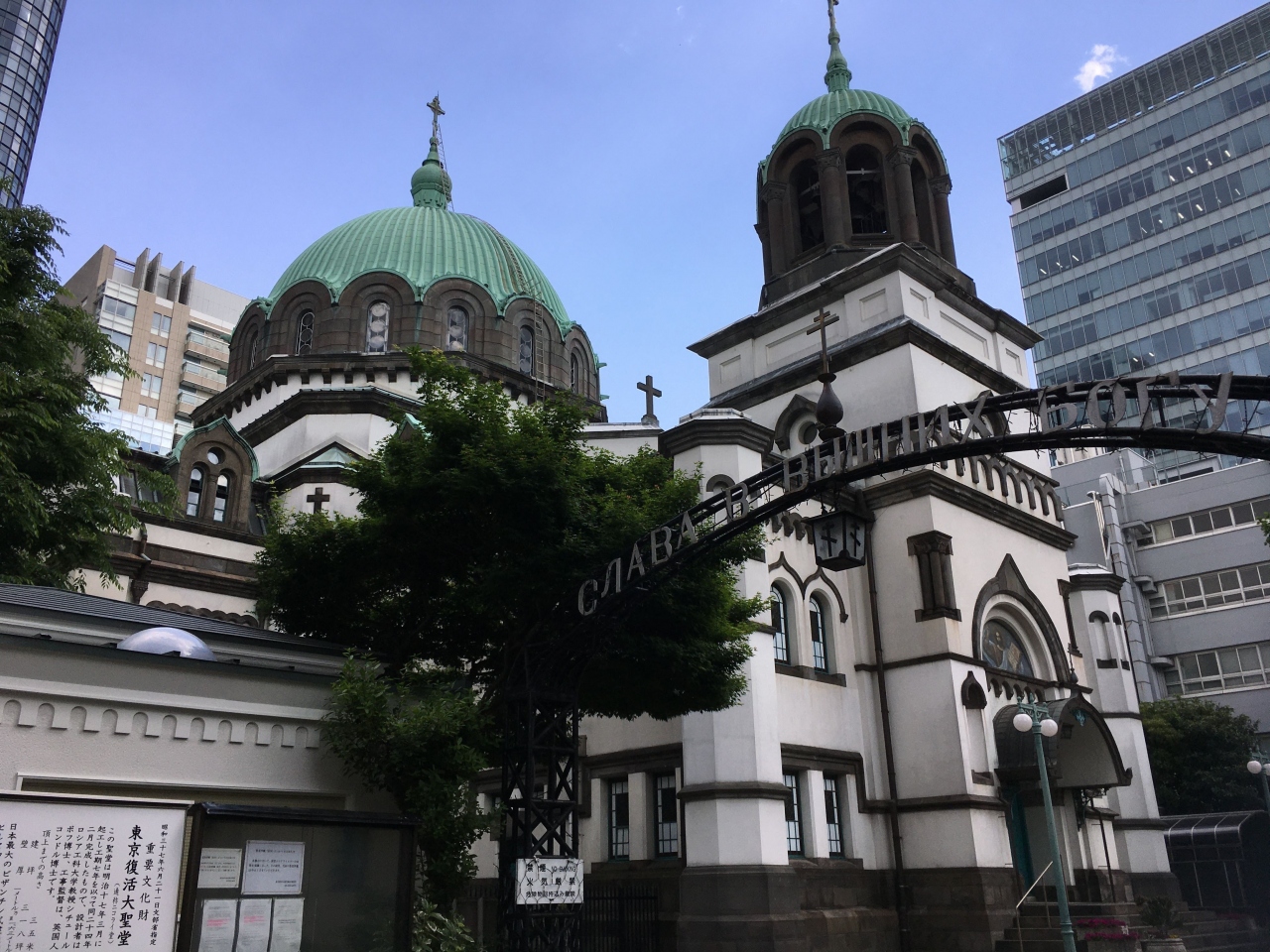 ニコライ堂の名で親しまれているキリスト教の一派である「正教会」の教会ですが、その正式名称は日本ハリストス正教会教団東京復活大聖堂といいます。1891年にロシアから布教のために来日した聖ニコライによって建立されました。関東大震災で被災しましたが再建され、第二次世界大戦の空襲の被害を免れ、1962年に国の重要文化財に指定されました。日本に残る最も古いレンガ造りの重要文化財の一つです。うち東京復活大聖堂は最古級であり、その後の煉瓦造の文化財修復の嚆矢となった。「正教会」のルーツは古く、ローマ帝国の時代まで遡ります。西暦395年、ローマ帝国が東西に分裂し、それに伴い、もともと一つだったキリスト教も教皇の首位権をめぐり、東西に大分裂を起こしました。そして東方教会(正教会:ギリシャ正教)と西方教会(ローマ・カトリック教会)とに分れ、それぞれ独自の発展を遂げてきました。東ローマの国教となった東方正教会はギリシャ語を公用語としていたことからギリシャ正教会とも言われました。日本にロシアから正教会が伝えられたのは、聖ニコライが布教のため函館にやってきた1861年と言われています。ロシア領事が函館にあったロシア領事館内に聖堂を建てたのが始まりです。函館ハリストス正教会は日本正教会の最初の聖堂で、日本における正教会伝道の始まりの場所でもあります。函館から布教の拠点が東京に移され、日本正教会の総本山となったのが神田のニコライ堂でした。