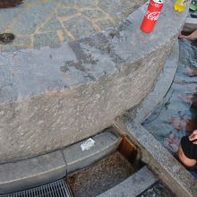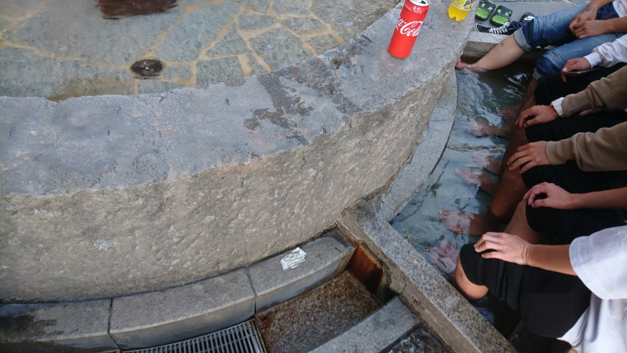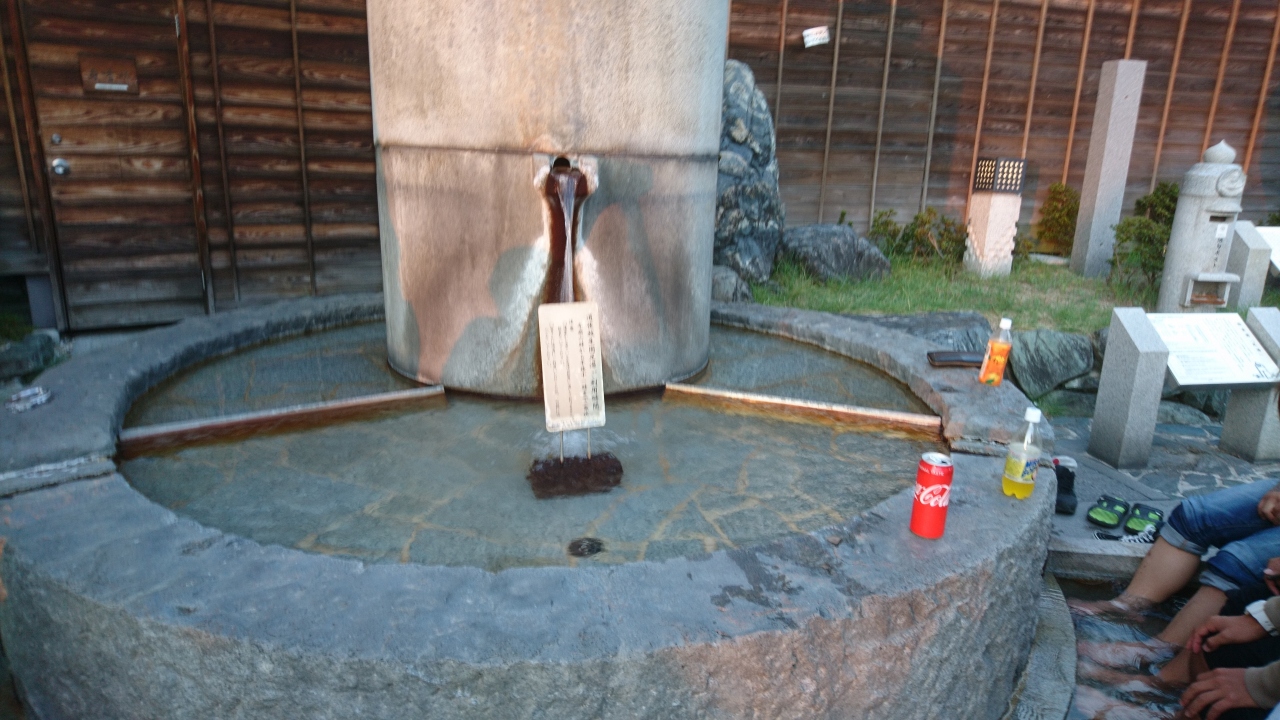 道後温泉駅のすぐ前にある足湯です。みなさん気持ち良さそうに入っています。足湯は、意外と温まりますからね。目の前には、坊ちゃんのからくり時計があり、10分ほどでしたが時間が来るまで、ここで過ごしました。温泉街にある足湯は人気があるので、皆さん譲り合いながらたのしんでいました。