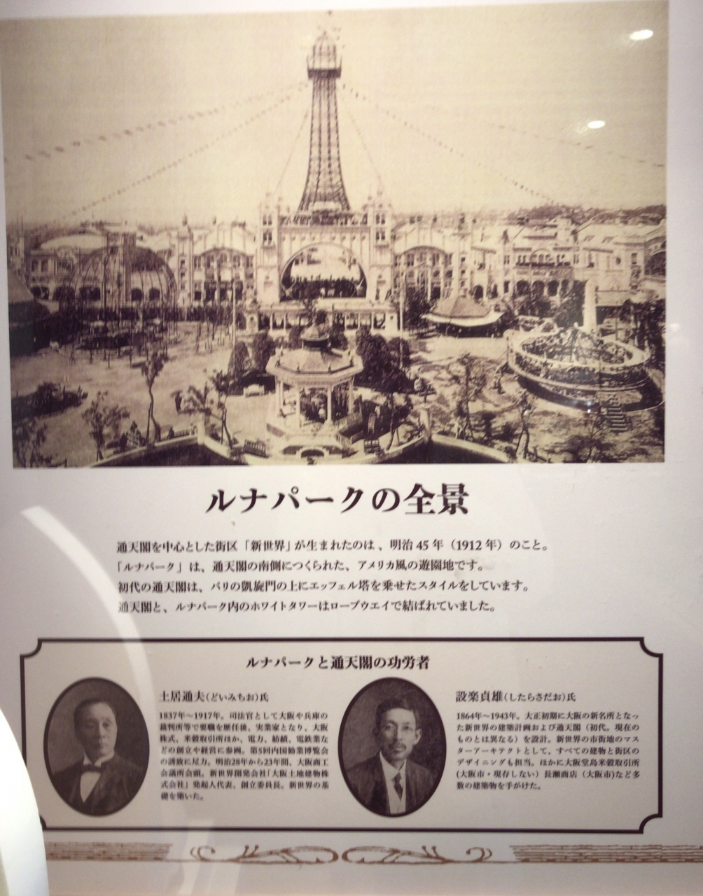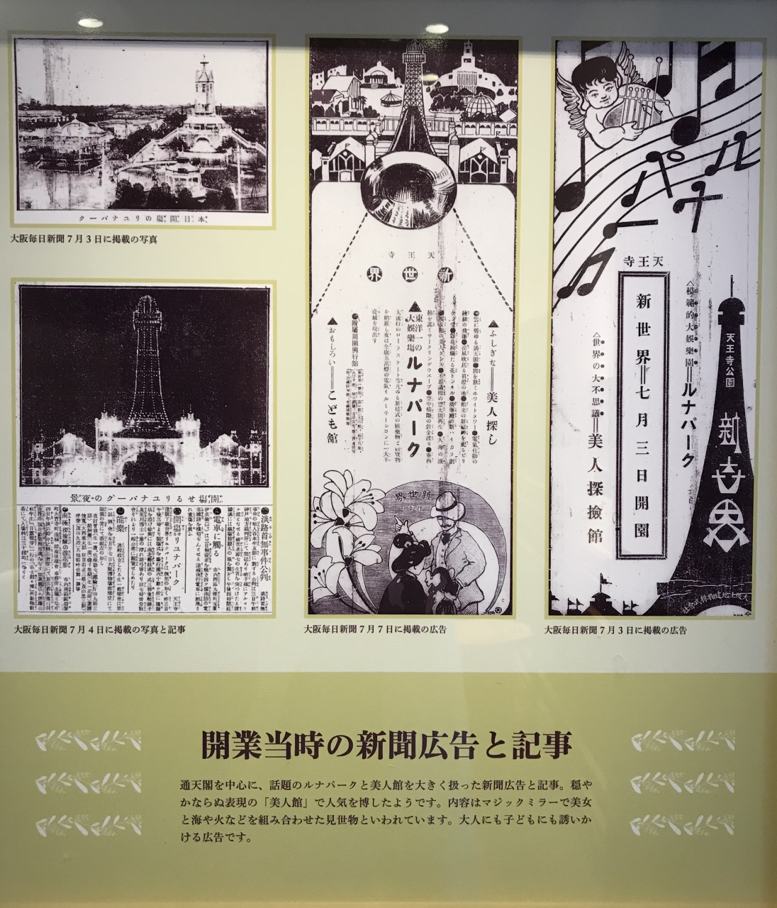界隈の新世界は戦前かつてルナパークというアメリカ風の遊園地があり、その展示が館内にあり興味深い歴史が知れる