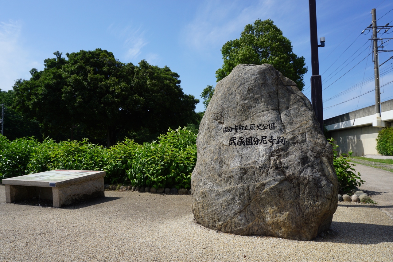 国分寺には、国分寺跡と並んで、近くに国分尼寺跡もあります。一見すると公園のような感じなのですが、建物の柱の跡が規則的に配置されていて、かつて立派な施設があったことを偲ばせます。この目と鼻の先が、伝鎌倉街道です。