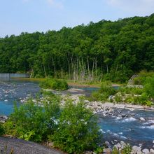 美瑛の青い池の付近を流れている川です。青い池と同じく、こちらの川もコバルトブルーの色をしていました。青い池の隣を流れているところを見られますし、もう少し上流にある白ひげの滝が見える橋あたりからも美瑛川が見られます。
