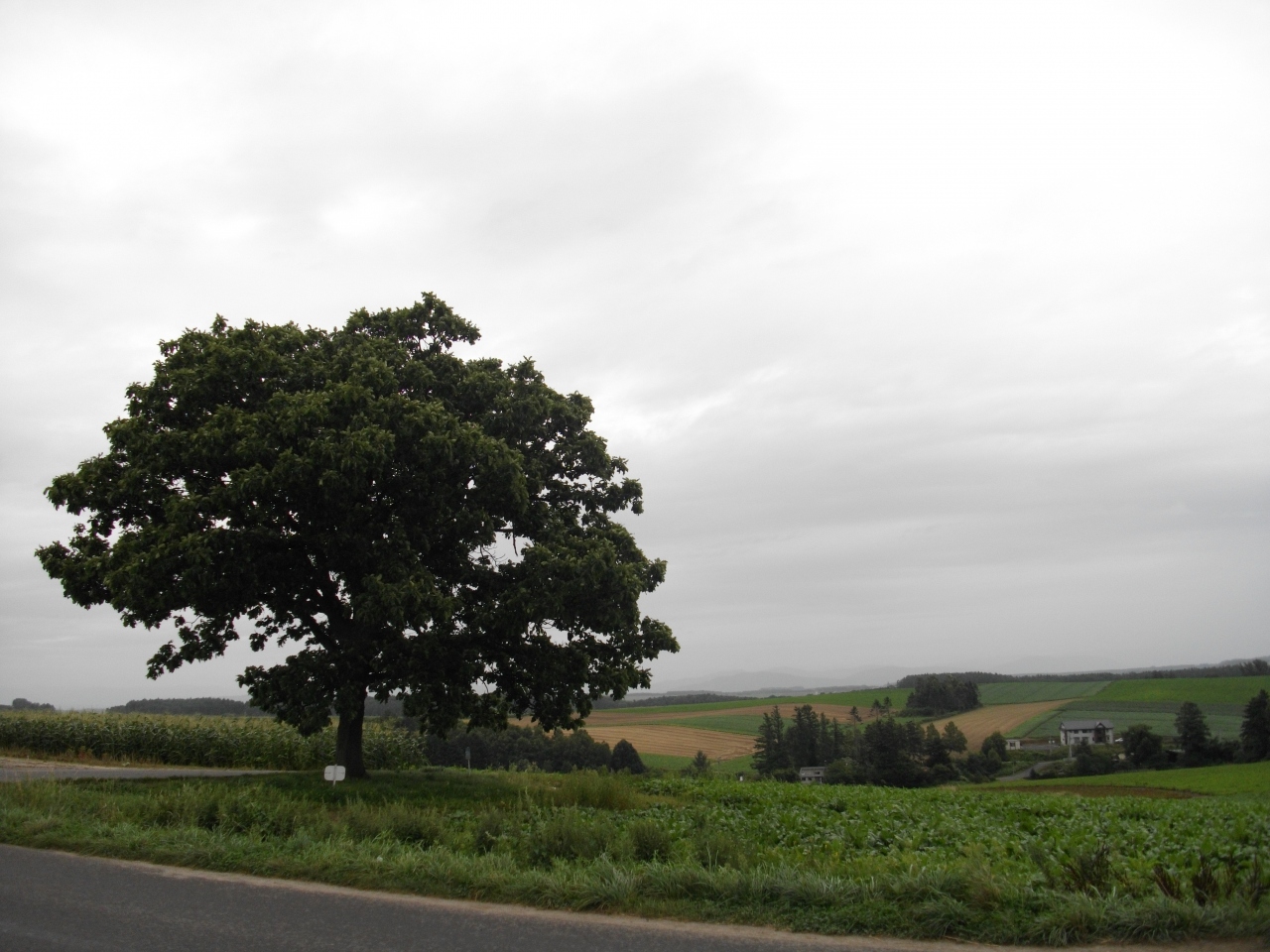 セブンスターのパッケージに使われたことから名前がついている大きなカシワの木です。美瑛のこのような有名なスポットは近寄れない場所もあったりしますが、こちらは道路沿いに木があるので、近くまで行けました。駐車場もありました。