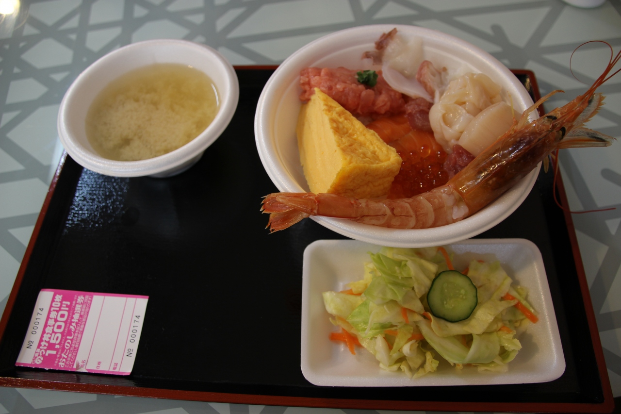 こちらはのっけ丼ができる場所です。のっけ丼は好きな具材を選んでオリジナル海鮮丼を作るものです。いくらやサーモン、ネギトロなど人気の具材はもちろんマグロやホタテなど青森の名物もたくさんあります。しじみの味噌汁もあっておいしいですよ。新鮮な海の幸をたくさん味わいましょう!