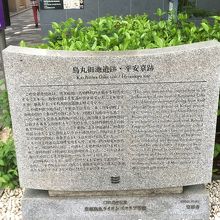 遺跡は残っていません。石碑が烏丸御池の交差点の東北角に建っているのみですが、地下鉄烏丸御池駅にあるコンコ一スの展示コーナーの一部に地下鉄烏丸線が建設された際に発掘されたものの一部がガラスケ一スに展示されています。