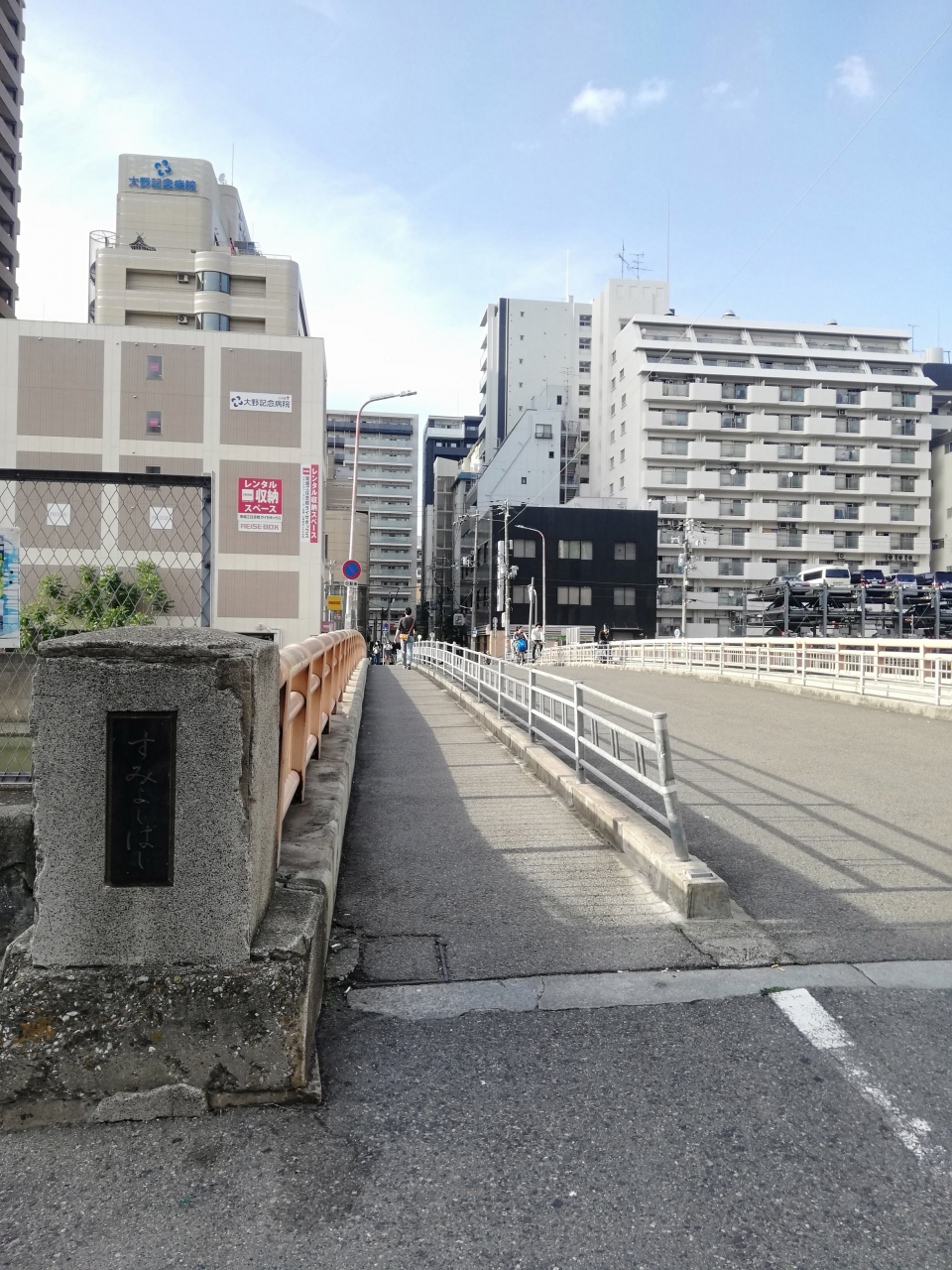 道頓堀川に架かる橋の一つです。住宅街の中にあり、歩道が狭いです。昔は「橋の上に立つとはるか南に住吉の高燈篭を望むことができたためこの名が付けられた」そうです。大阪府のHPに昔の写真がアップされていますので、現在の風景と比べるのも面白いと思います。