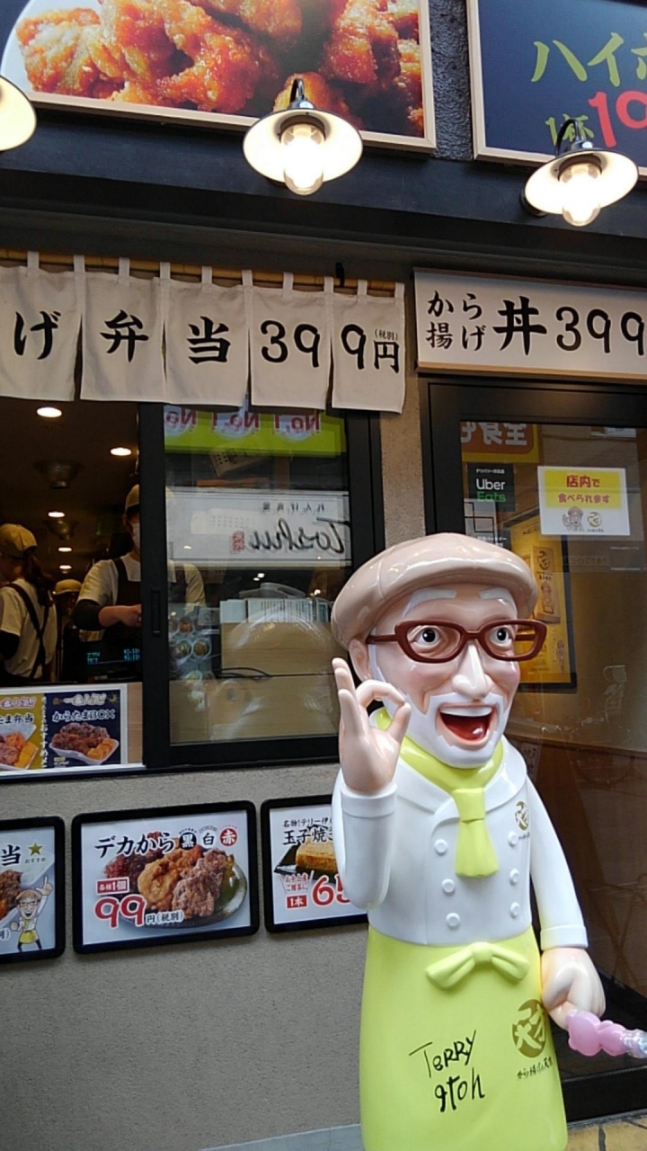 から揚げの天才が、JR十条駅すぐ知覚にある十条銀座商店街の中にあります。たまたま歩いていて、店前に列ができていたので行ってみると、店先にテリー伊藤さんの人形がありました。唐揚げだけでなくお弁当も購入できます。
