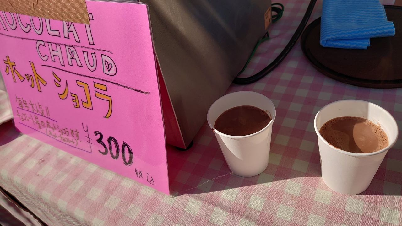 初詣の帰りに立ち寄る事が多いのですが、店頭でホットショコラを売っています。