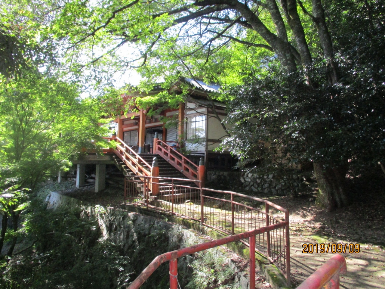 琵琶湖北岸、海津大崎の崖の上にたつ真言宗の古刹です。道路から急な階段をしばらく上ると、朱塗りの本堂と阿弥陀堂がたっており、阿弥陀堂は、落城した安土城の一部をそのまま使用したことから、「安土の血天井」として知られているようです。また、本堂前の展望台からは、琵琶湖のすばらしい眺めを堪能できます。