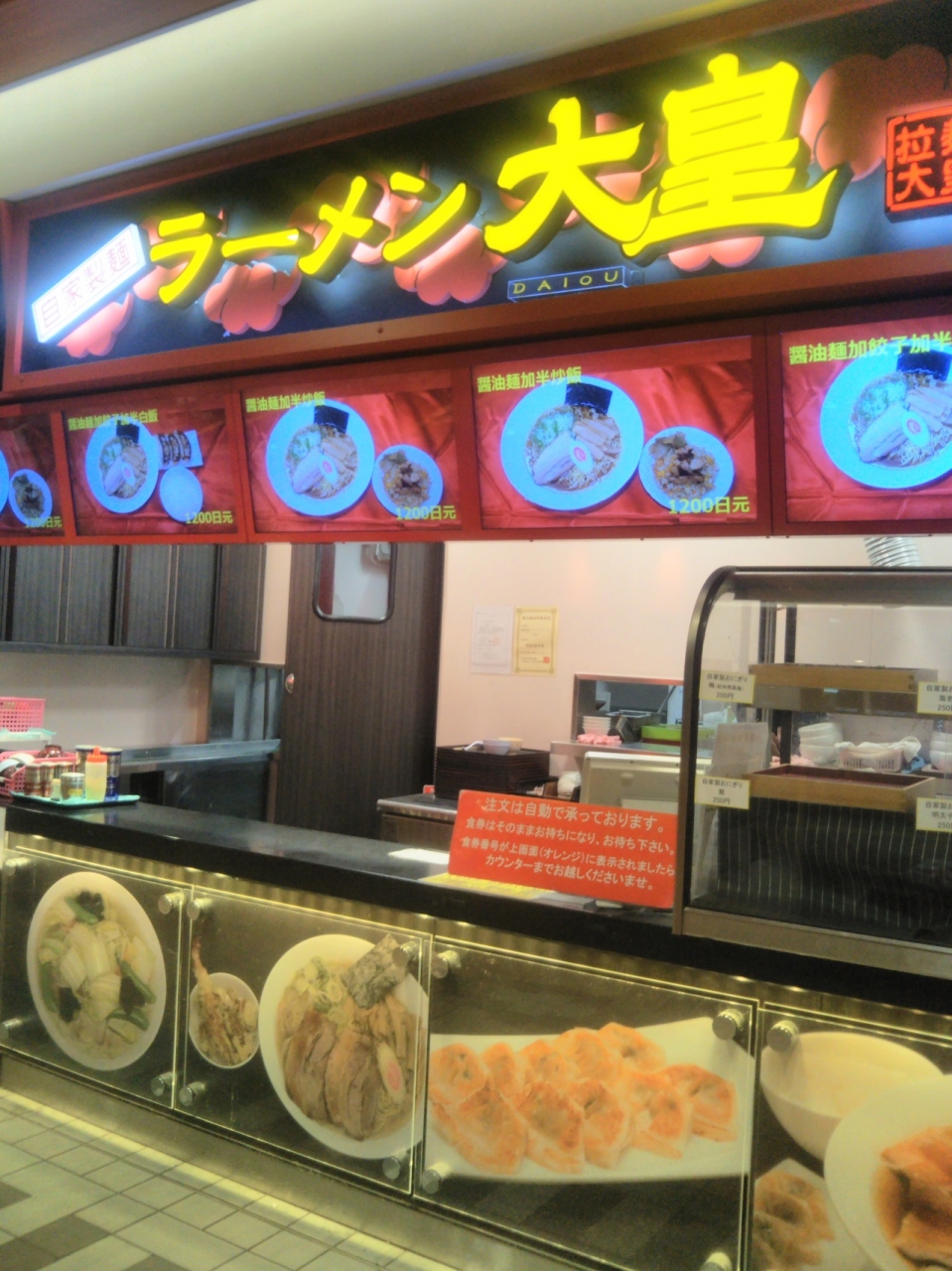 「談合坂サービスエリア(下り線)」のフードコートにある『ラーメン大皇』は、24時間営業の中華料理店です。夜中もオープンしているので、寒い日の夜には特に 出来たてのラーメンで身体も温まりとても助かります。食券制となっています。