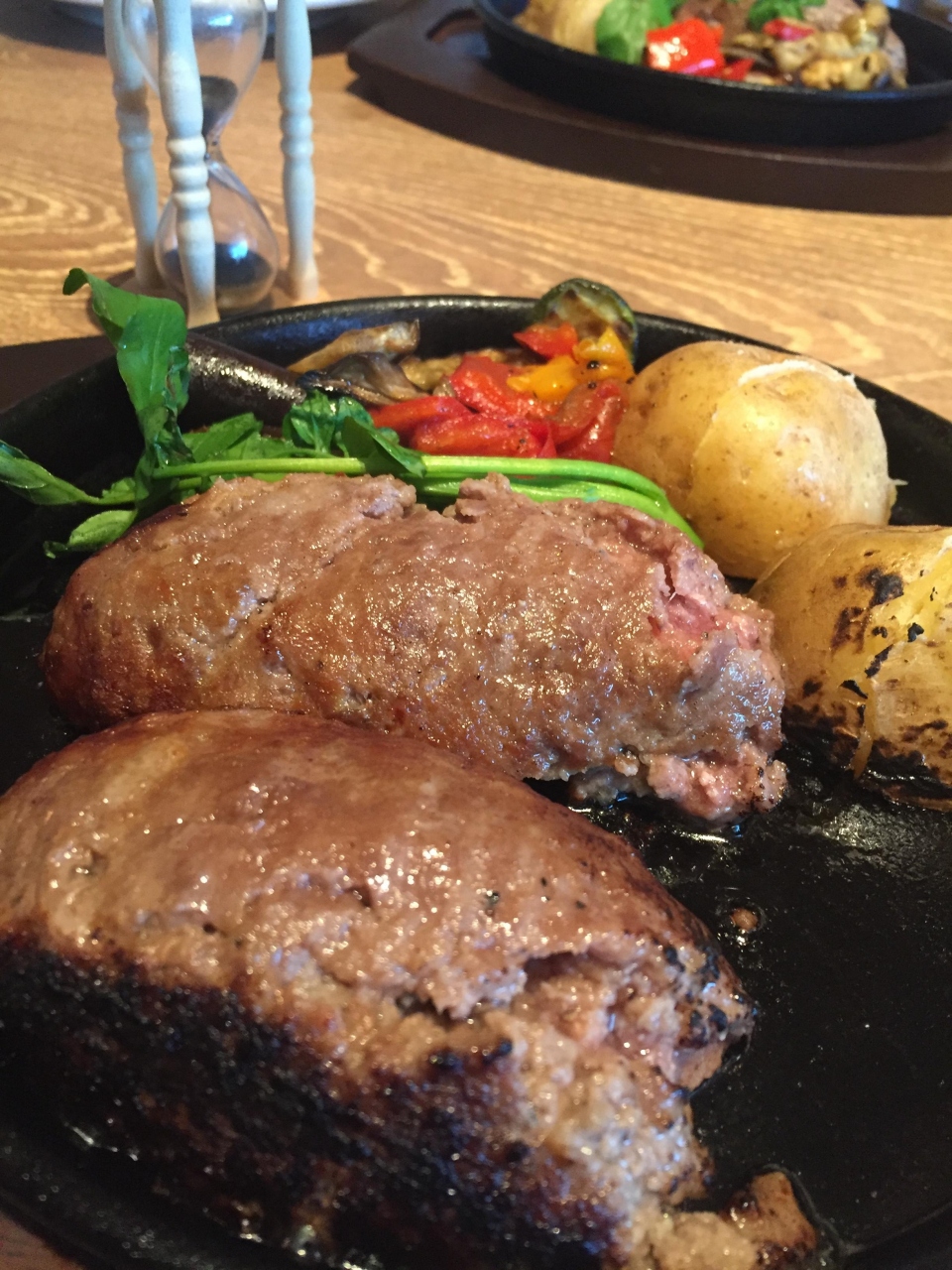 かなりレアな状態でだされるハンバーグですが、柔らかくジューシーです。